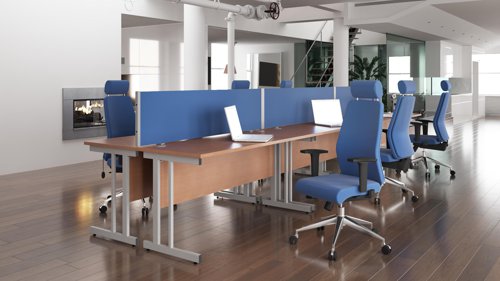 Impulse contract desk | 25mm tops | Heat resistant melamine finish | 18mm modesty panels | 2mm protective abs edging | Double strut legs | 2 cable ports | Height adjustable feet | Steel to steel fixings | 2 modesty panels slots| Deep set modesty panel (5") allows for compatibility of most screen clamp fittings | Weight Capacity 135Kg
